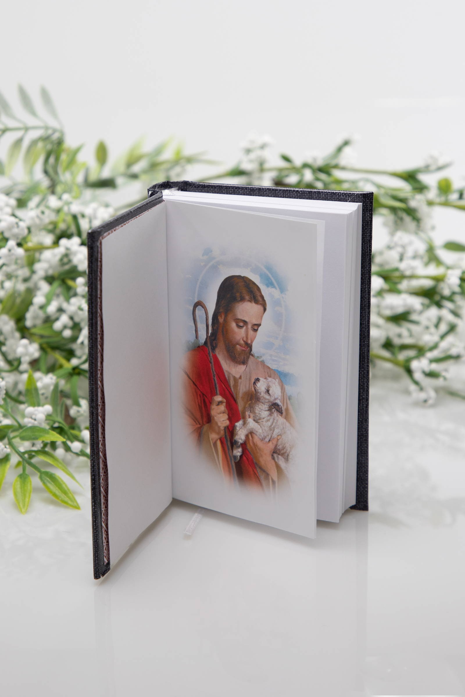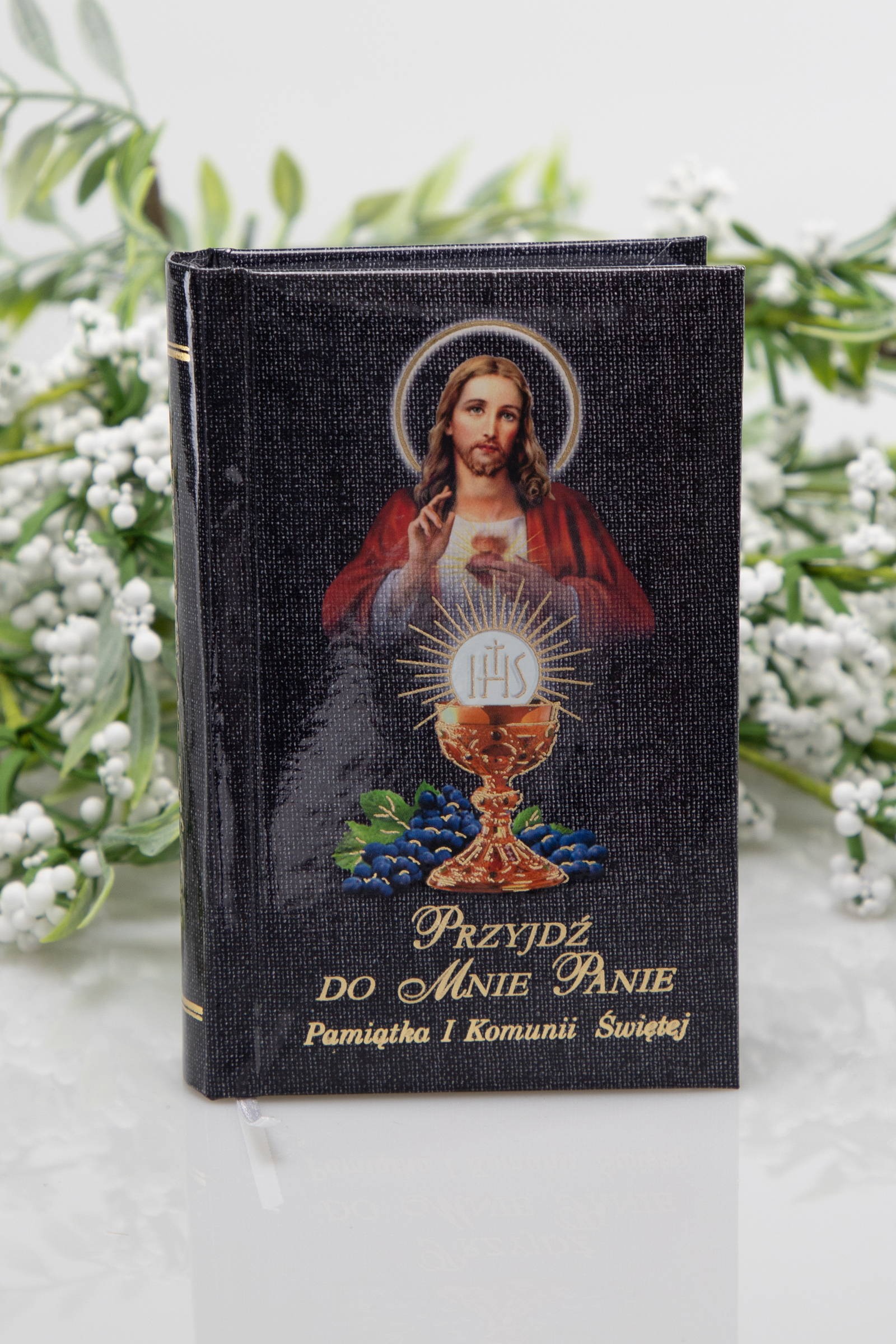 Książeczka „Przyjdź do mnie Panie” jest także pamiątką Pierwszej Komunii Świętej i posiada ozdobne strony do uzupełnienia dat Sakramentu, Spowiedzi Świętej oraz Pierwszej Komunii.