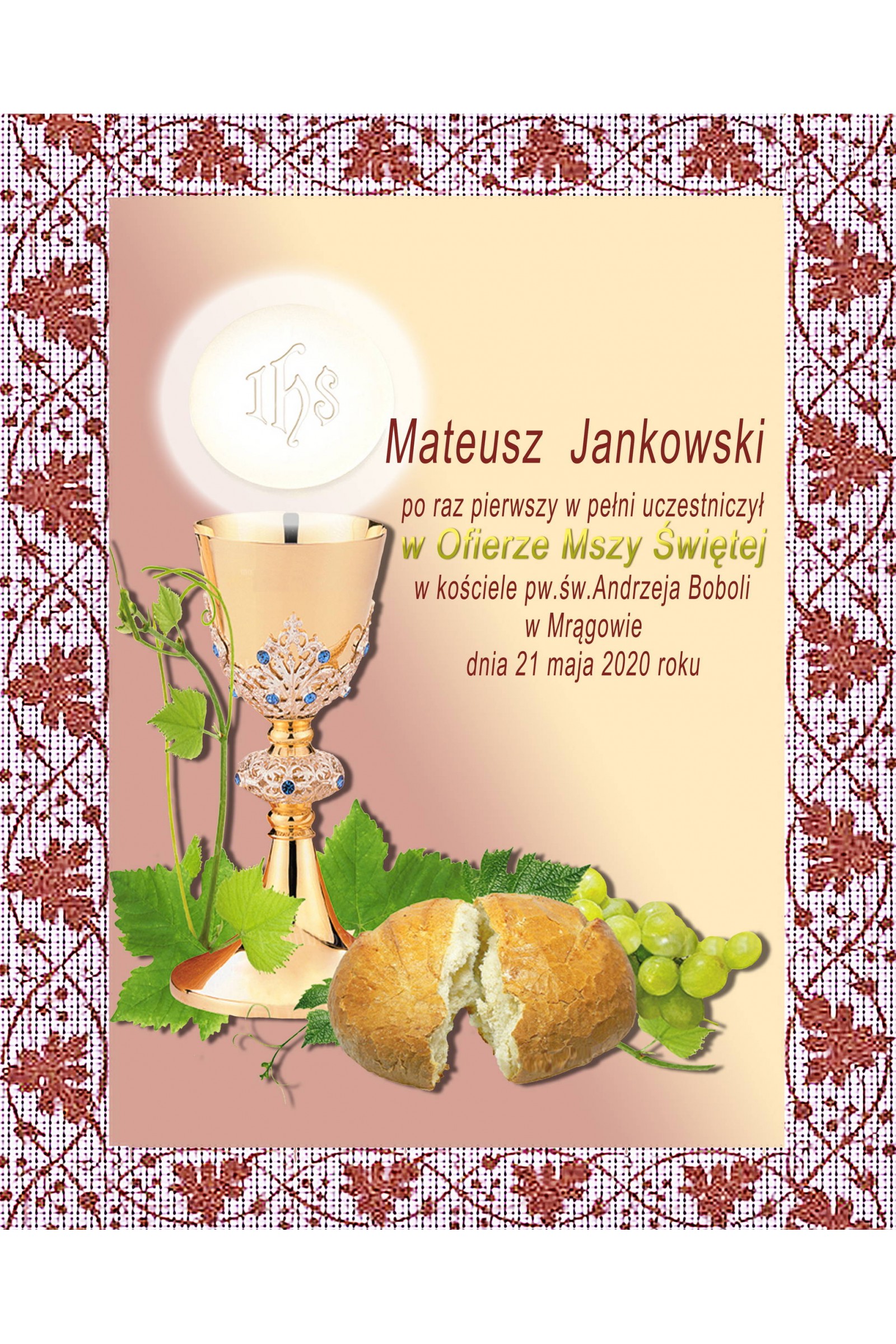 Wydrukowana, personalizowana pamiątka komunijna z kategorii: Obrazki komunijne.