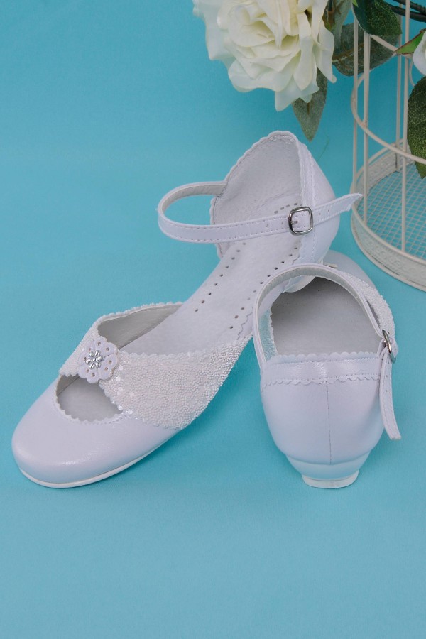 Eleganckie buty komunijne to nieodłączna część ubioru komunijnego każdej dziewczynki, która dzięki pięknemu fasonowi naszych modeli, tego dnia może stać się księżniczką. W naszym sklepie można nabyć wygodne buty pierwszokomunijne wykonane w Polsce z dbałością o wysoką jakość. Fotografia przedstawia produkt należący do kategorii: Buty komunijne dla dziewczynek.