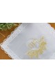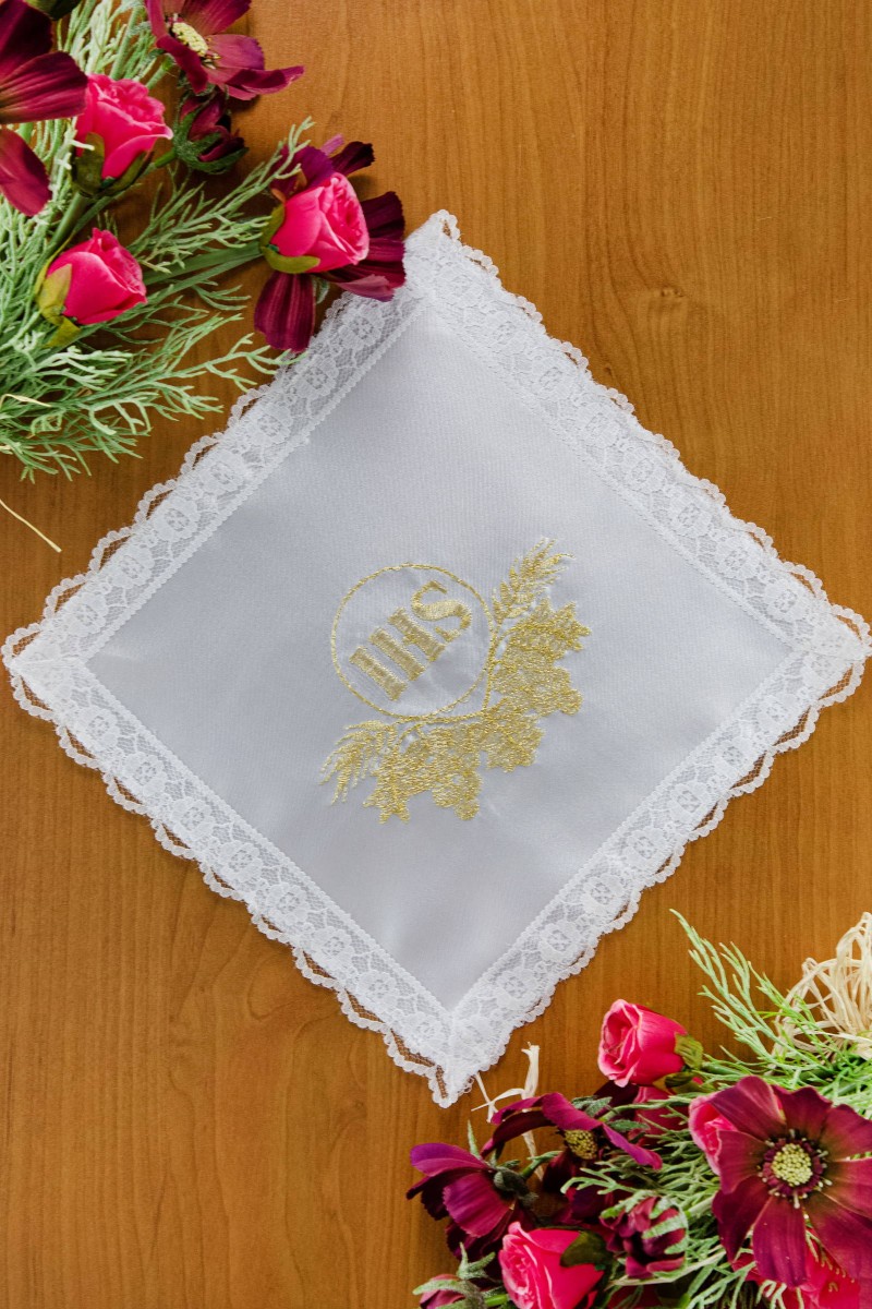 Chusteczka komunijna haftowana uszyta z atłasu, będzie doskonałym pomysłem na upominek i drobiazg dzięki, któremu dzień I Komunii Świętej na zawsze zapamięta Państwa dziecko. Pamiątka komunijna dla chłopca i dziewczynki z kolekcji: Chusteczki komunijne haftowane.