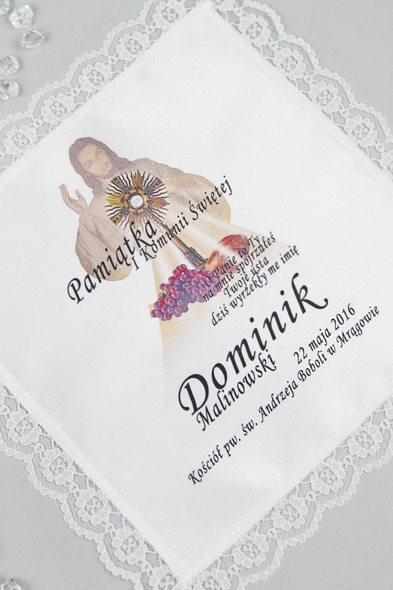 • Pamiątka pierwszokomunijna w postaci chusteczki z laserowym nadrukiem,