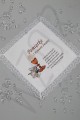 Wyjątkowa Pamiątka I Komunii Św. w postaci chusteczki wykonanej w technice grafiki na tkaninie z połyskiem obszyta koronką. Posiada sekwencję pierwszokomunijną podkreślającą wyjątkowość uroczystości. Pamiątka komunijna dla chłopca i dziewczynki z kolekcji: Chusteczki komunijne z grafiką bez personalizacji.