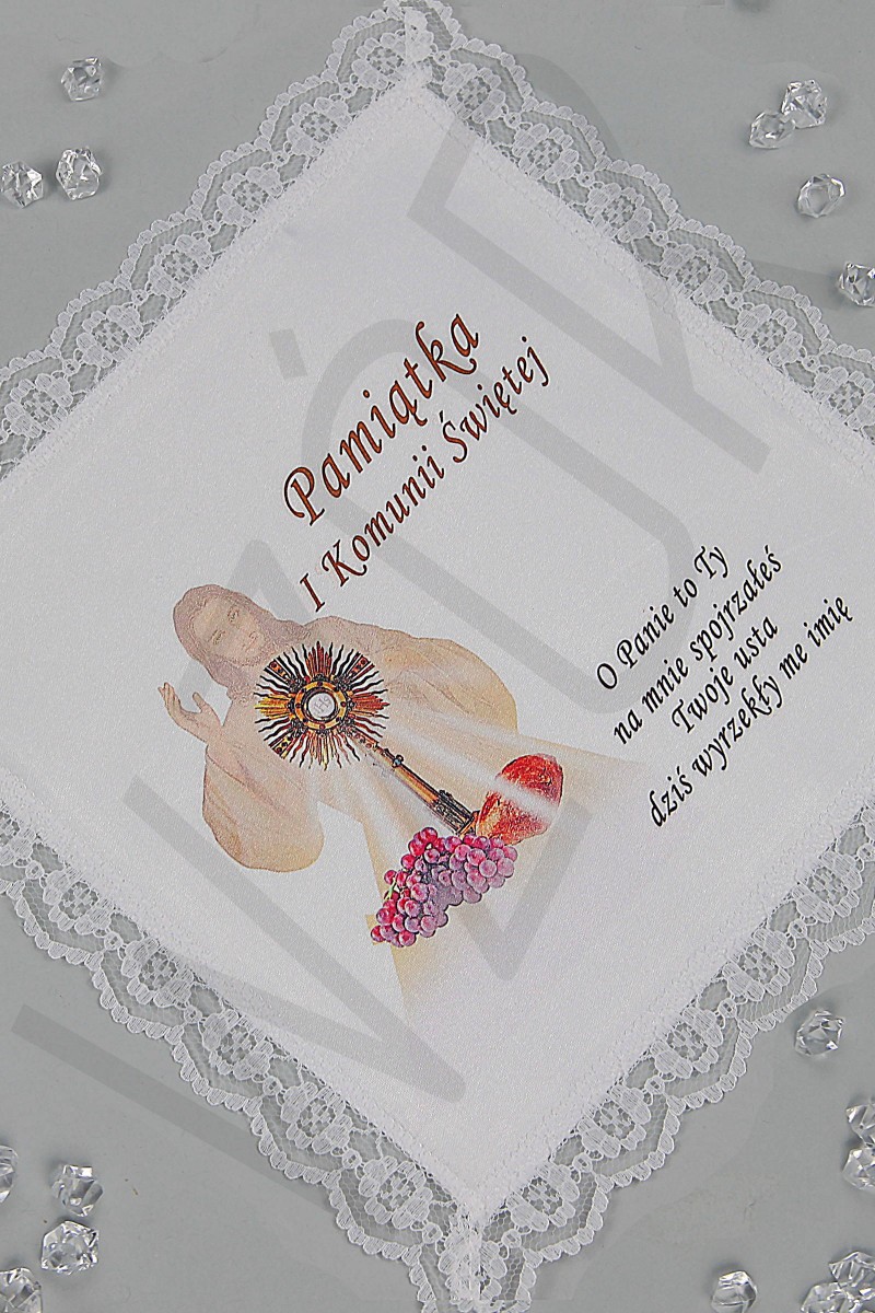 • Pamiątka pierwszokomunijna w postaci chusteczki z laserowym nadrukiem,