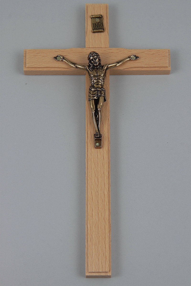 Krzyż pierwszokomunijny wiszący, wykonany z niklu, mosiądzu i drewna z zamieszczonym wizerunkiem Jezusa Chrystusa. Starannie wykonany, Polskiej produkcji o najwyższej jakości. Jest to nieodłączny dodatek dla dzieci przystępujących do Pierwszej Komunii Świętej z kategorii: Krzyże, pamiątki komunijne.