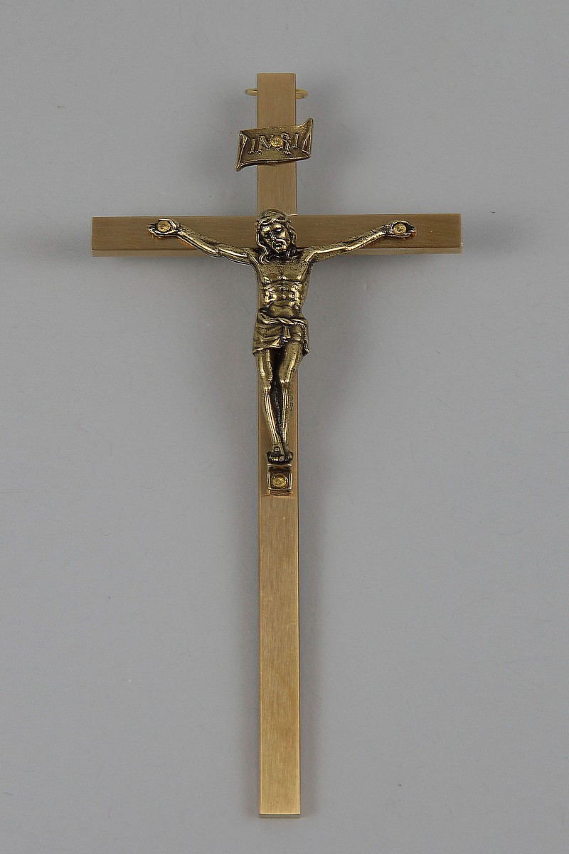 Krzyż pierwszokomunijny wiszący, wykonany z mosiądzu z zamieszczonym wizerunkiem Jezusa Chrystusa. Starannie wykonany, Polskiej produkcji o najwyższej jakości. Jest to nieodłączny dodatek dla dzieci przystępujących do Pierwszej Komunii Świętej z kategorii: Krzyże, pamiątki komunijne.