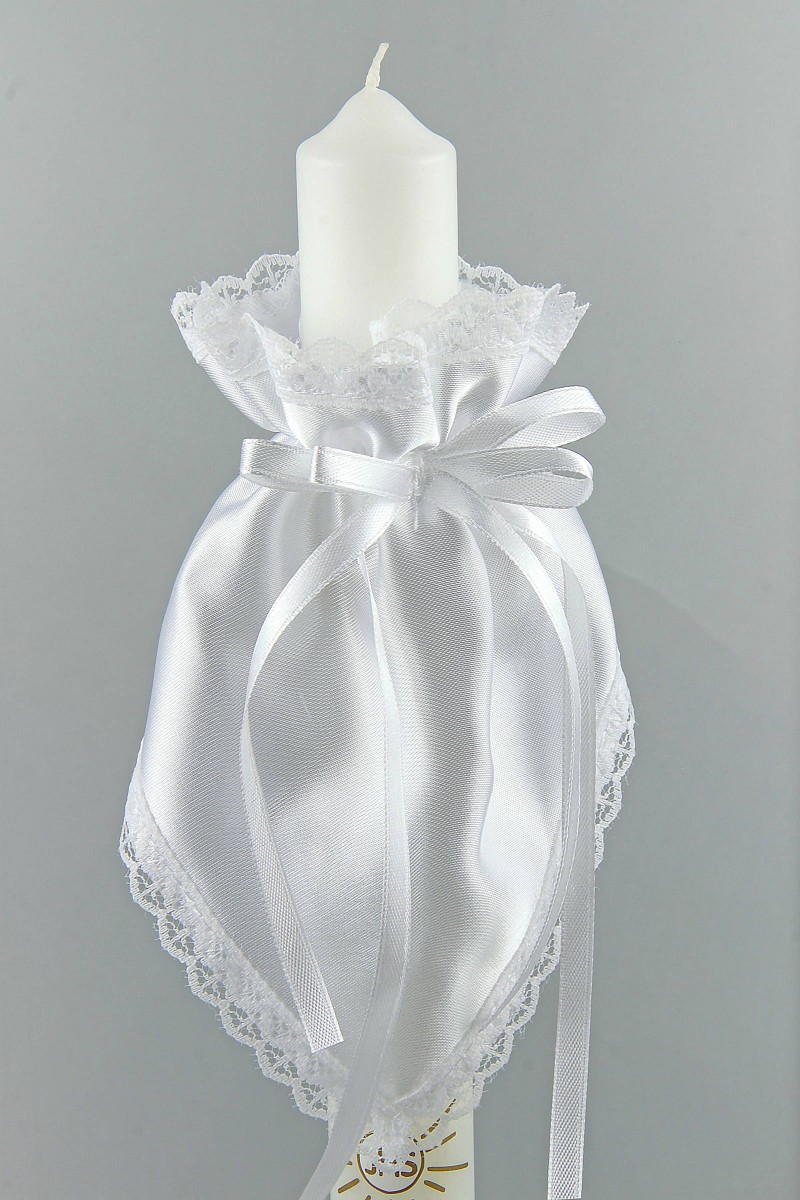 Okapnik komunijny jest praktycznym i estetycznym dodatkiem – z jednej strony zapobiega przed ewentualnym kapaniem wosku, a z drugiej upiększa trzymaną przez dziecko świece. Produkt z kategorii: Okapniki komunijne na świece.