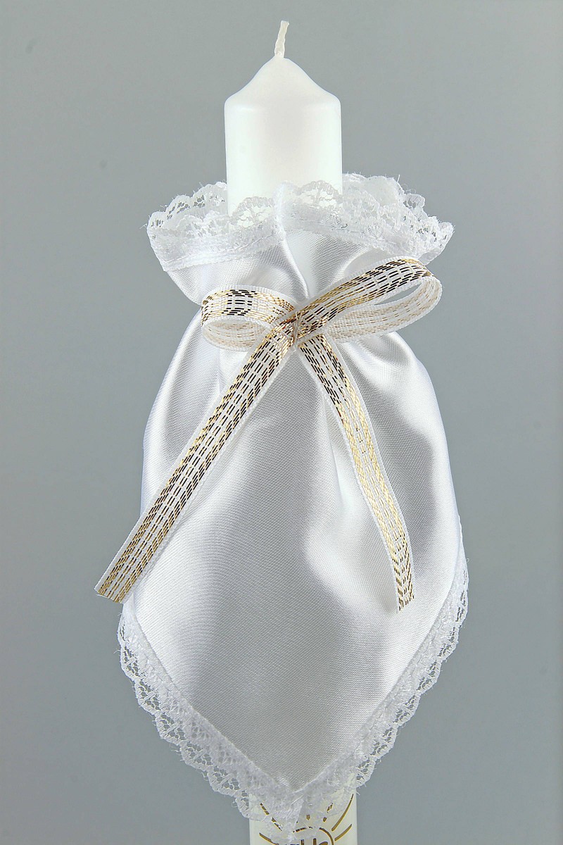 Okapnik komunijny jest praktycznym i estetycznym dodatkiem – z jednej strony zapobiega przed ewentualnym kapaniem wosku, a z drugiej upiększa trzymaną przez dziecko świece. Produkt z kategorii: Okapniki komunijne na świece.