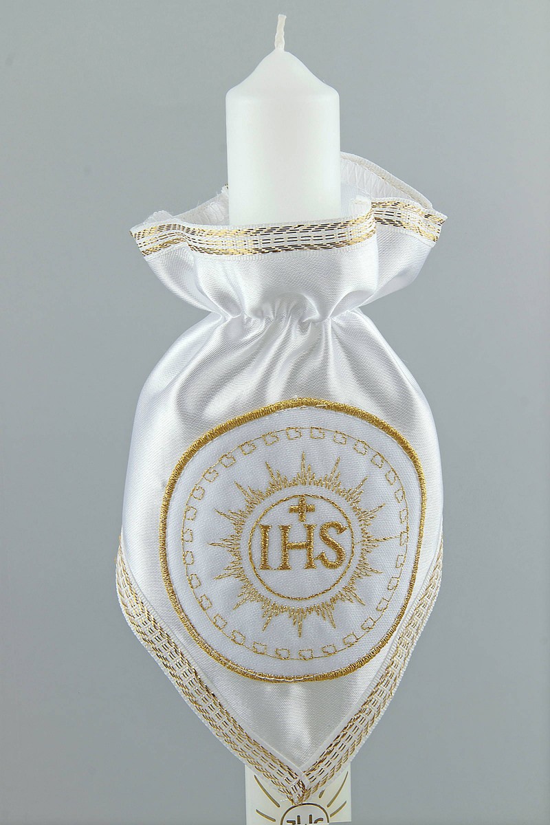 Okapnik komunijny jest praktycznym i estetycznym dodatkiem – z jednej strony zapobiega przed ewentualnym kapaniem wosku, a z drugiej upiększa trzymaną przez dziecko świece. Produkt z kategorii: Okapniki komunijne na świece.
