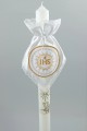 Okapnik komunijny jest praktycznym i estetycznym dodatkiem – z jednej strony zapobiega przed ewentualnym kapaniem wosku, a z drugiej upiększa trzymaną przez dziecko świece. Produkt z kategorii: Okapniki komunijne na świece.