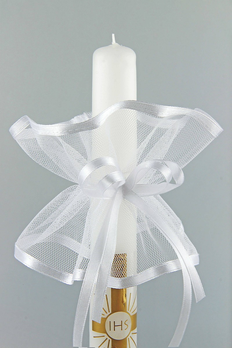 Okapnik komunijny jest praktycznym i estetycznym dodatkiem – z jednej strony zapobiega przed ewentualnym kapaniem wosku, a z drugiej upiększa trzymaną przez dziecko świece. Produkt z kategorii: Okapniki komunijne na świece.