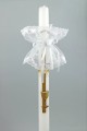 Okapnik komunijny jest praktycznym i estetycznym dodatkiem – z jednej strony zapobiega przed ewentualnym kapaniem wosku, a z drugiej upiększa trzymaną przez dziecko świece. Produkt z kategorii: Okapniki komunijne na świece.