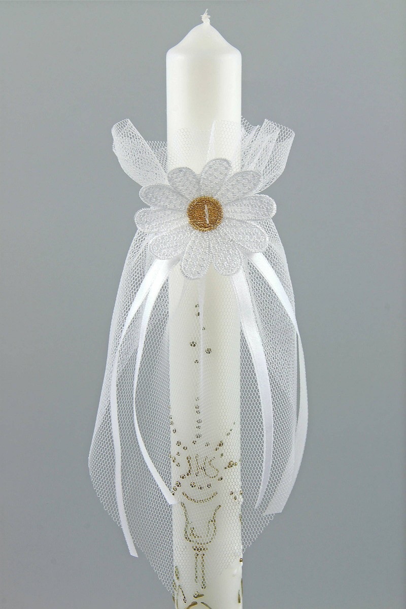 Okapnik komunijny jest praktycznym i estetycznym dodatkiem – z jednej strony zapobiega przed ewentualnym kapaniem wosku, a z drugiej upiększa trzymaną przez dziecko świece. Produkt z kategorii: Okapniki komunijne na świece.
