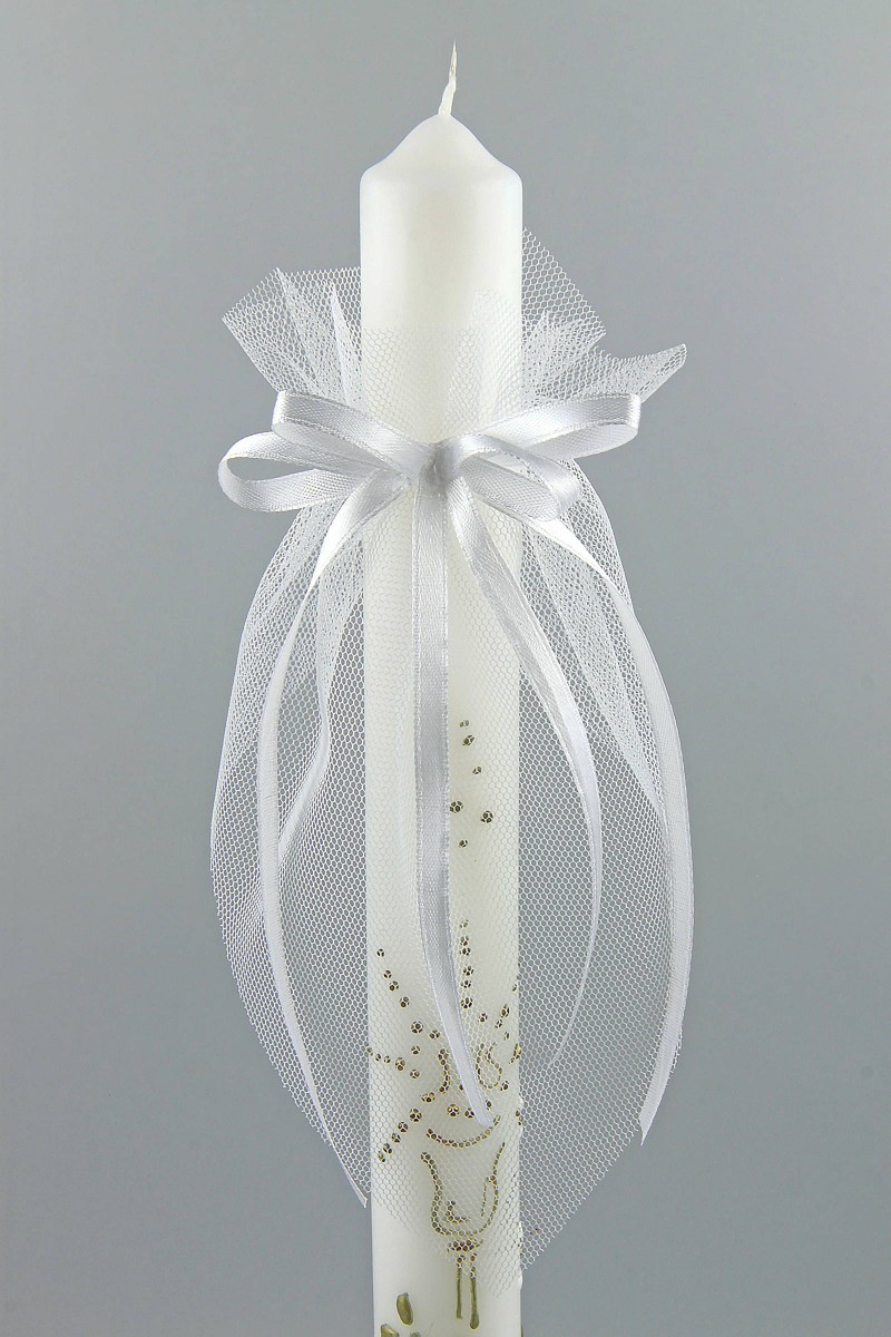 Okapnik komunijny jest praktycznym i estetycznym dodatkiem – z jednej strony zapobiega przed ewentualnym kapaniem wosku, a z drugiej upiększa trzymaną przez dziecko świece. Produkt z kategorii: Okapniki komunijne na świece.