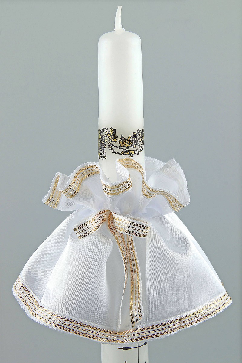 Okapnik komunijny jest praktycznym i estetycznym dodatkiem – z jednej strony zapobiega przed ewentualnym kapaniem wosku, a z drugiej upiększa trzymaną przez dziecko świece. Produkt z kategorii: Okapniki komunijne na świece.