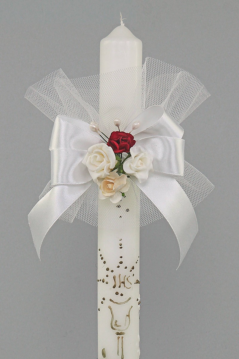 Okapnik komunijny jest praktycznym i estetycznym dodatkiem – z jednej strony zapobiega przed ewentualnym kapaniem wosku, a z drugiej upiększa trzymaną przez dziecko świece. Produkt z kategorii: Okapniki komunijne na świece.