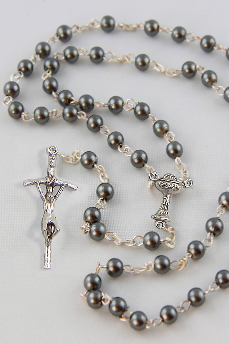 Różaniec komunijny - perełka grafit UK-PG - obraz 0