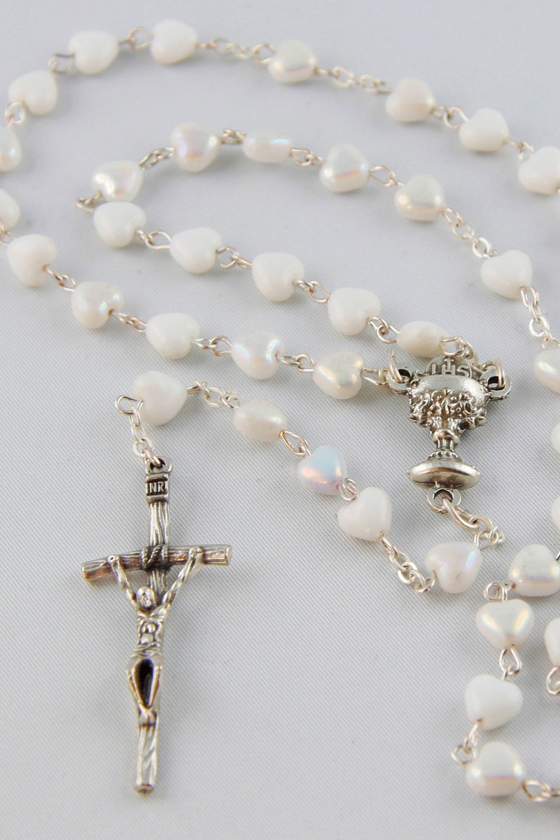 Różaniec komunijny wykonany w Polsce jest niezbędnym elementem uroczystości jaką jest Pierwsza Komunia. Nasze różańce komunijne dla dzieci wykonano z materiałów biżuteryjnych lub drewnianych. Produkt należy do kategorii: Różańce komunijne.
