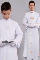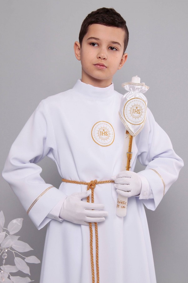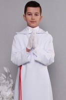 Alby komunijne to elegancki i ładnie prezentujący się strój na uroczystość Pierwszej Komunii Świętej. Ten dzień ma być wyjątkowy, więc ważny jest też odpowiedni ubiór, który zagwarantuje schludny wygląd oraz komfort dziecku. Alby komunijne przeznaczone dla chłopców szyjemy w różnych fasonach, tak aby dostosować je dowolnie do własnych preferencji. Chłopięce alby można wybierać spośród tych zakończonych stójką, kapturem, kołnierzem, a także według uznania dobrać zdobienie odzieży, którym mogą być wykończenia nicią, gipiurą czy piękne hafty i motywy. Nasze produkty gwarantują najlepiej wyselekcjonowane materiały, precyzyjne wykonanie, a dzięki temu zadowolenie każdego chłopca i jego rodziców z alby komunijnej.