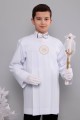 Strój na fotografii należy do kategorii: Ubiory komunijne dla chłopców. Model prezentuje komżę z serii: Komże komunijne