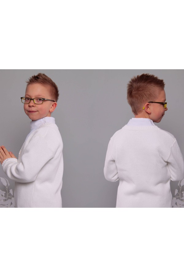 W czasie uroczystości Pierwszej Komunii Świętej poza wyglądem stroju ważna jest również jego funkcjonalność. Aby zadbać o komfort dziecka, należy garderobę uzupełnić o okrycie wierzchnie. Sweterki komunijne to praktyczne rozwiązanie w wypadku niesprzyjającej temperatury. Oferujemy cztery modele sweterków przeznaczonych dla chłopców, wszystkie prezentują się bardzo elegancko i można swobodnie wybrać ten, który najbardziej przypada do gustu dziecka. Sweterki komunijne mają doskonałą jakość, gwarantują wygodę i dbają o utrzymanie komfortu cieplnego. Klasyczny biały sweterek dla chłopca może zostać wykorzystany nie tylko w czasie uroczystości Pierwszej Komunii Świętej, ale również w ramach innych okazji oraz na co dzień.