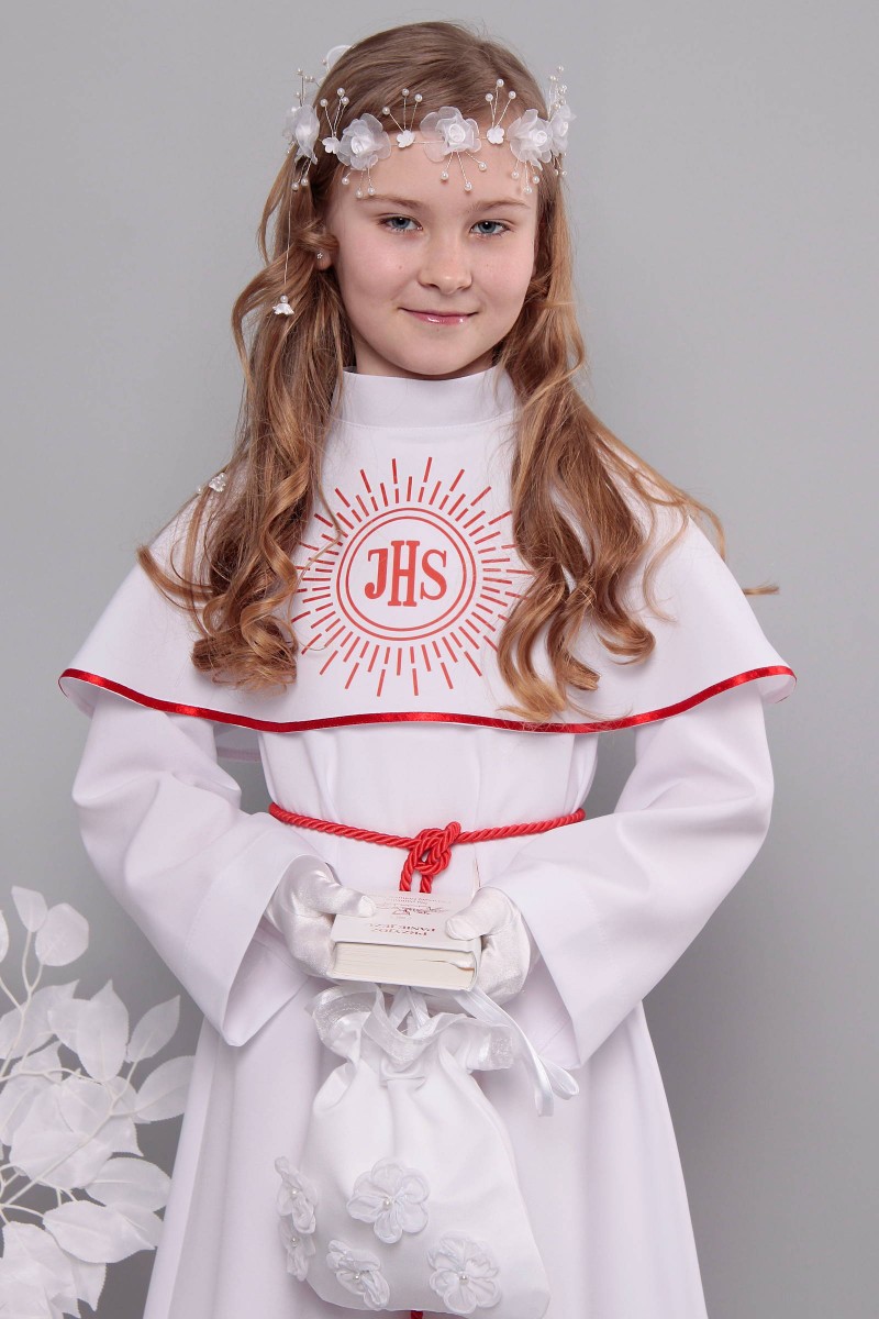 Klasyczna alba komunijna z kołnierzem (w zestawie) rozszerzana na dole