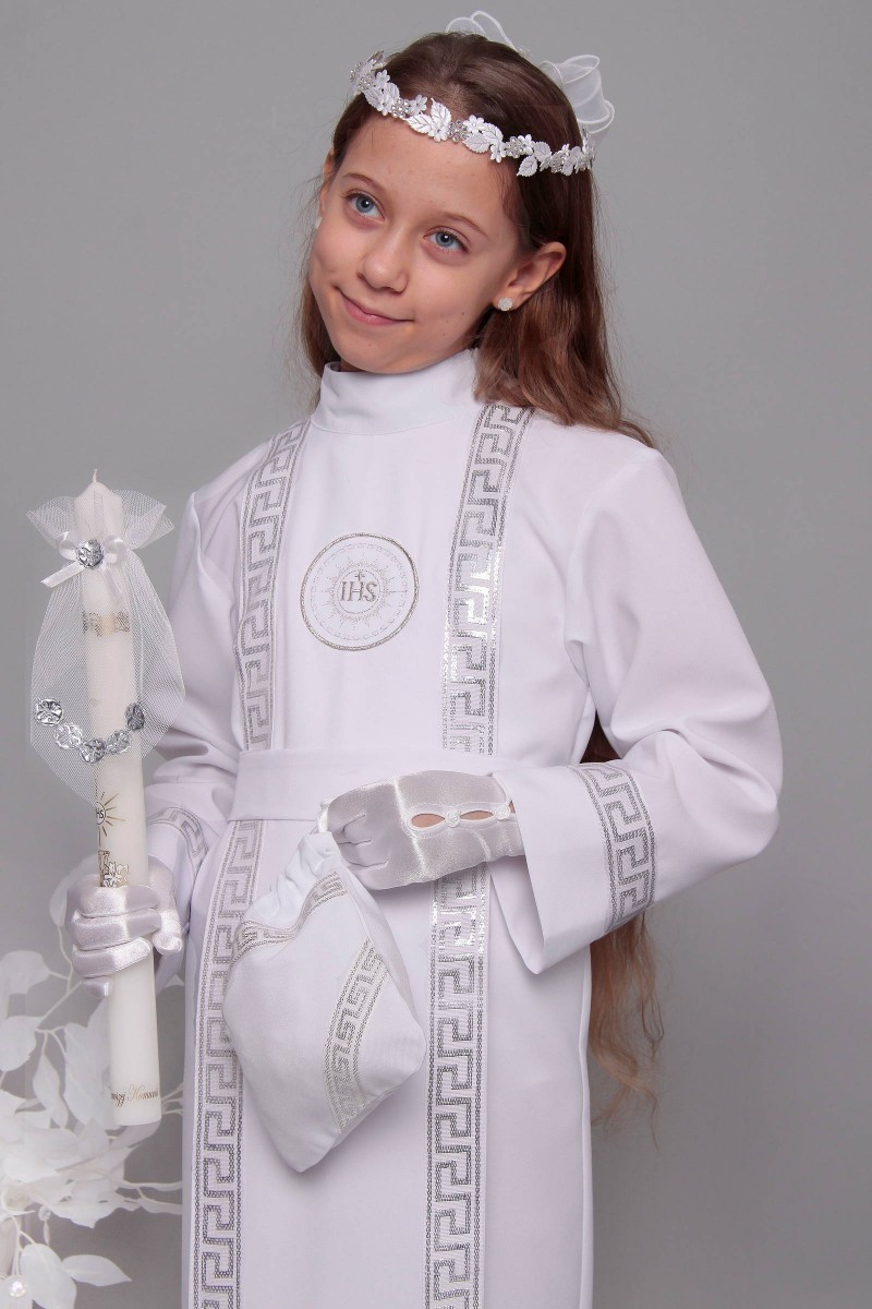 Kolekcja: Długa alba komunijna dla dziewczynki (z kontrafałdą)