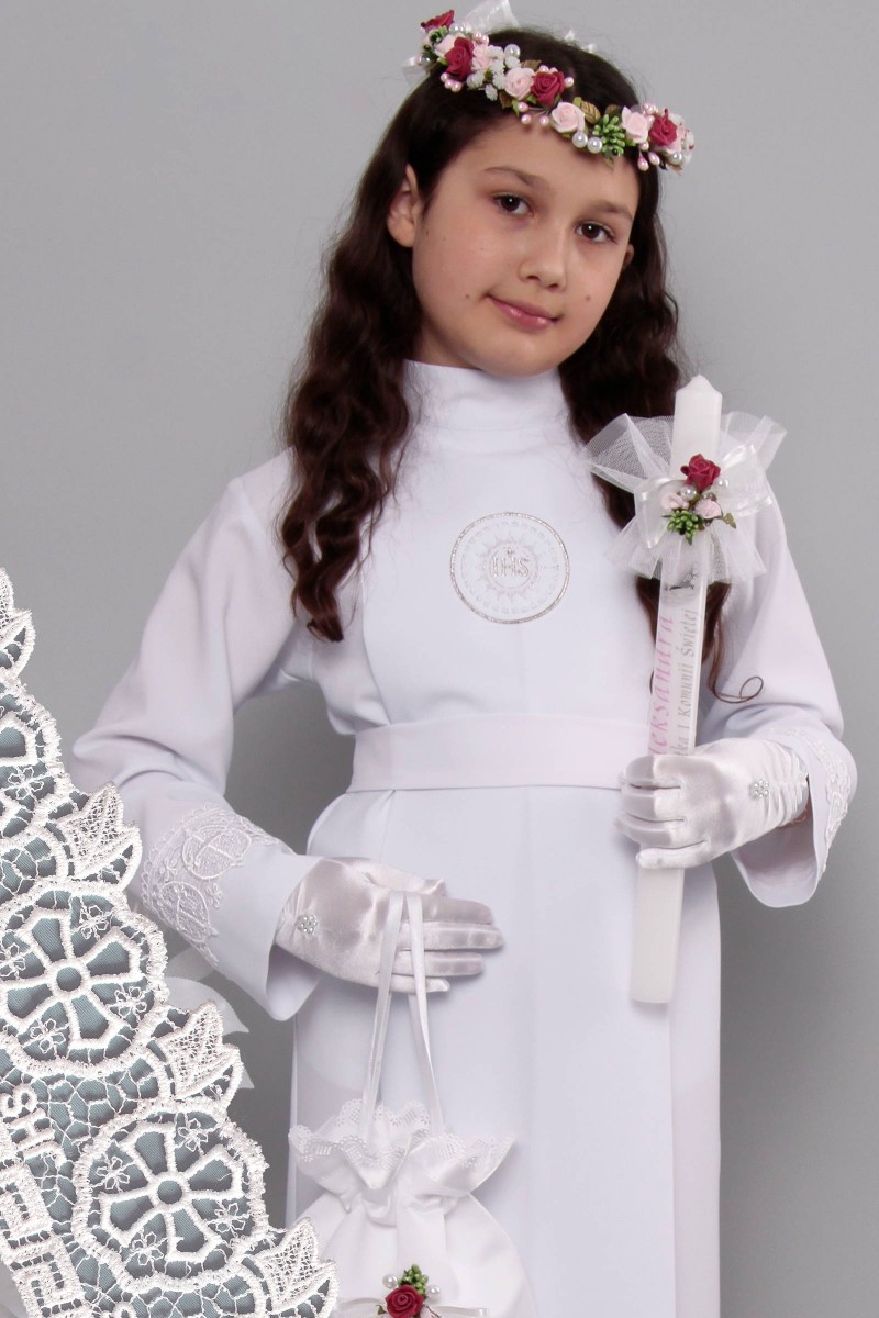 Kolekcja: Długa alba komunijna dla dziewczynki (z kontrafałdą)