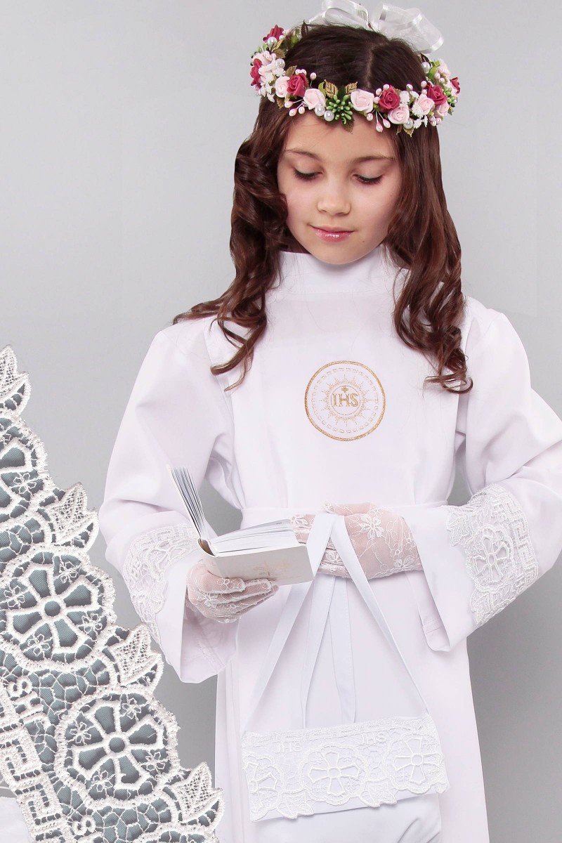 Kolekcja: Długa alba komunijna dla dziewczynki (z zakładką)