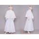 Dodatki komunijne dla dziewczynki to również peleryny. Produkt z naszej oferty należy do kategorii: Ubiory komunijne przeznaczone na pierwszą komunię dla dziewczynek. Zdjęcie prezentuje pelerynkę należącą do serii: Peleryny komunijne.