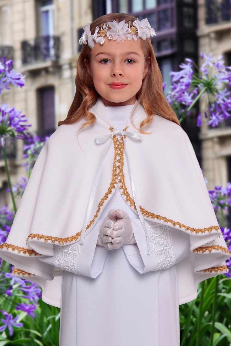 Kiedy nadejdzie chłód w żadnym wypadku nie może zabraknąć w grupie dodatków komunijnych dla Państwa dziewczynki płaszczyka, ciepłej pelerynki czy etoli komunijnej, która zakładamy na alby lub sukienki do Pierwszej Komunii. Są one zapewnieniem komfortu i absolutna gwarancja, że dziecko będzie miało doskonalą ochronę na wypadek gdyby pogoda zawiodła i komunia odbyła się w chłodnym dniu. Oferowany płaszczyk należy do kategorii: Ubiory komunijne dla dziewczynek. Modelka prezentuje płaszczyk z serii: Płaszczyki komunijne.