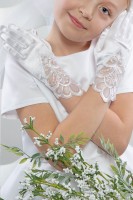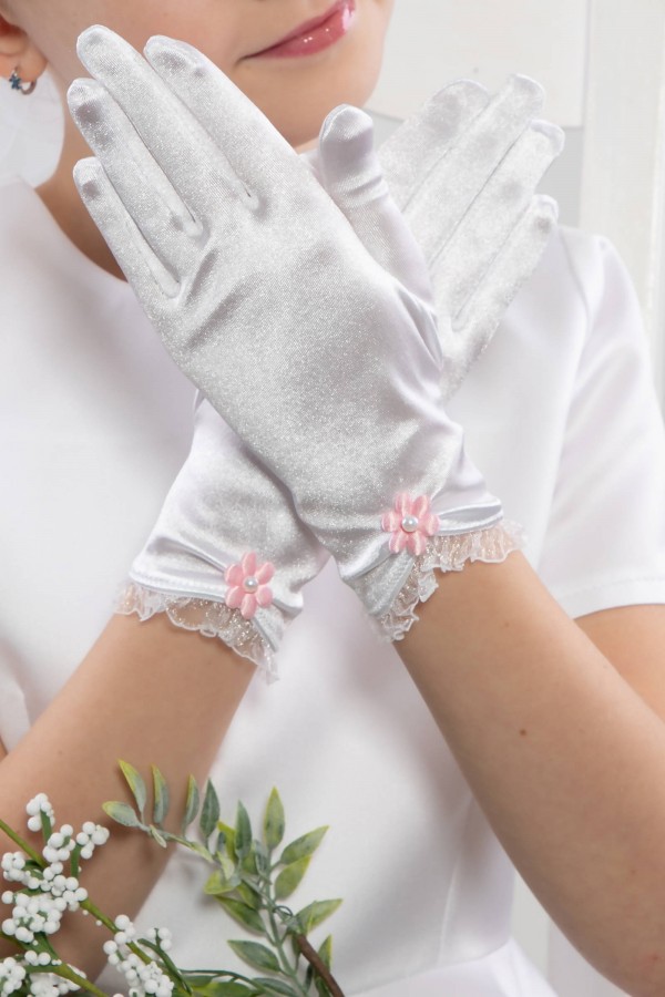 W tak ważnym dniu, jakim jest Pierwsza Komunia Święta, każda dziewczynka pragnie wyglądać pięknie i schludnie. Dlatego warto zadbać o każdy najdrobniejszy szczegół. Rękawiczki komunijne to elegancki dodatek, dzięki któremu stylizacja komunijna zostanie idealnie dopełniona. Proponujemy szeroki wybór rękawiczek uszytych z elastycznej i wytrzymałej lycry, dzięki której są one miękkie i wygodne. W naszej ofercie znajdą Państwo rękawiczki klasyczne oraz na palec, gładkie i koronkowe, z falbankami, kryształkami czy też z ażurową dekoracją. Wszystkie zaprojektowane tak, aby subtelnie podkreślić piękno i elegancję. Dostępne rozmiary uniwersalne oraz takie, które nadadzą się dla większych dłoni.