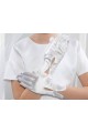 Artykuł z naszej oferty na fotografii należy do kategorii: Akcesoria - Dodatki komunijne dla dziewczynek. Modelka prezentuje rękawiczki komunijne należące do serii: Rękawiczki komunijne klasyczne.