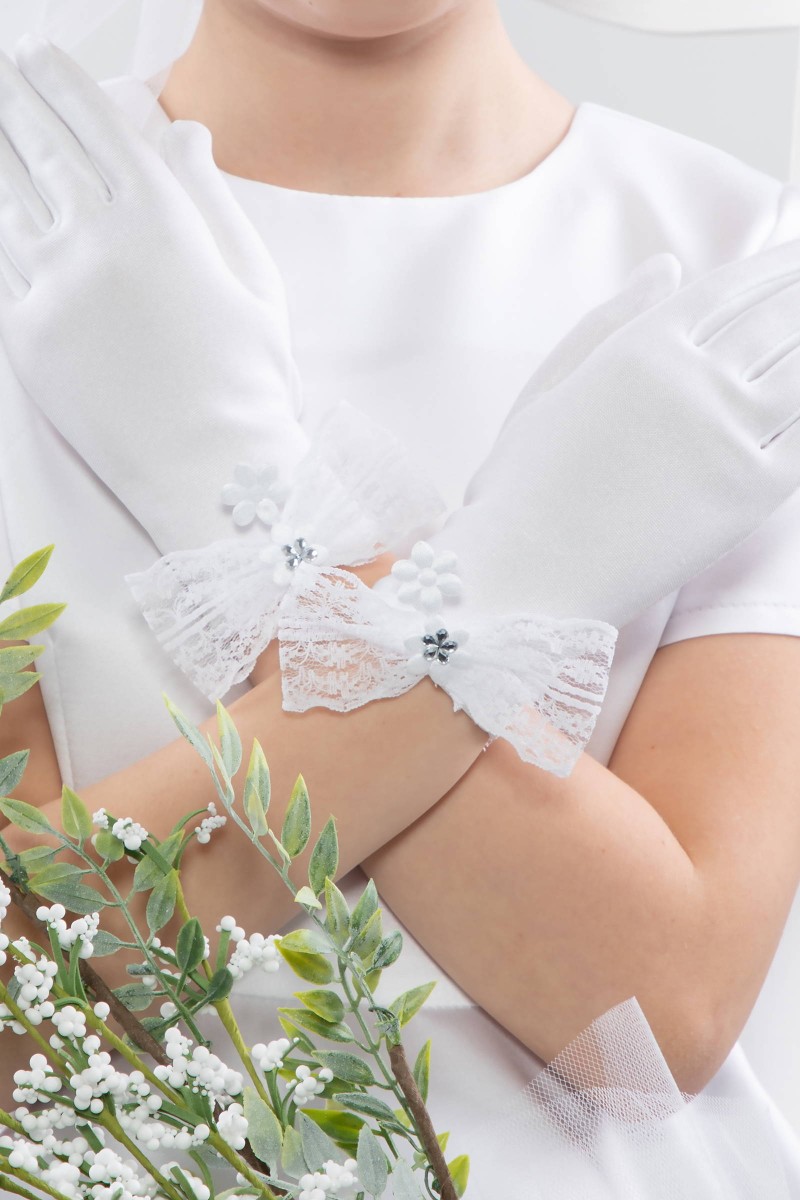• Kolekcja: Krótkie rękawiczki komunijne dla dziewczynki (klasyczne)
