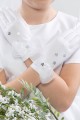 Artykuł z naszej oferty na fotografii należy do kategorii: Akcesoria - Dodatki komunijne dla dziewczynek. Modelka prezentuje rękawiczki komunijne należące do serii: Rękawiczki komunijne klasyczne.