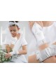 Artykuł z naszej oferty na fotografii należy do kategorii: Akcesoria - Dodatki komunijne dla dziewczynek. Modelka prezentuje rękawiczki komunijne należące do serii: Rękawiczki komunijne na palec.