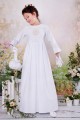 Strój na fotografii należy do kategorii: Ubiory komunijne dla dziewczynek. Modelka prezentuje sukienkę z serii: Sukienki komunijne "józefinki".