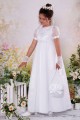 Strój na fotografii należy do kategorii: Ubiory komunijne dla dziewczynek. Modelka prezentuje sukienkę z serii: Sukienki komunijne "józefinki".