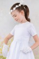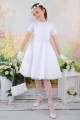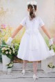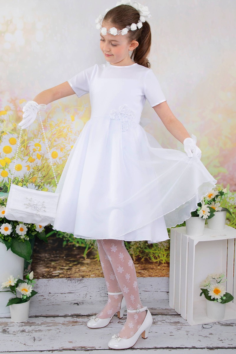 Krótka sukienka komunijna o klasycznym kroju z ładnie układającą się rozszerzaną spódnicą