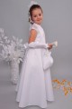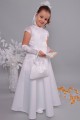 Strój na fotografii należy do kategorii: Ubiory komunijne dla dziewczynek. Modelka prezentuje sukienkę z serii: Sukienki komunijne satynowe.