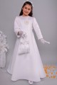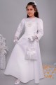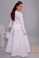 Strój na fotografii należy do kategorii: Ubiory komunijne dla dziewczynek. Modelka prezentuje sukienkę z serii: Sukienki komunijne satynowe.