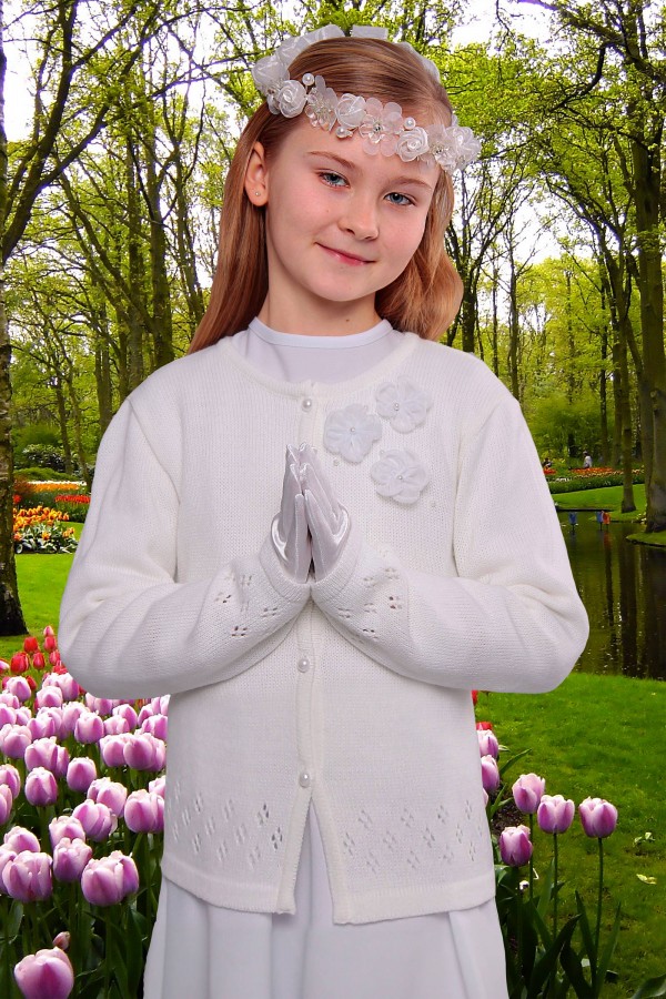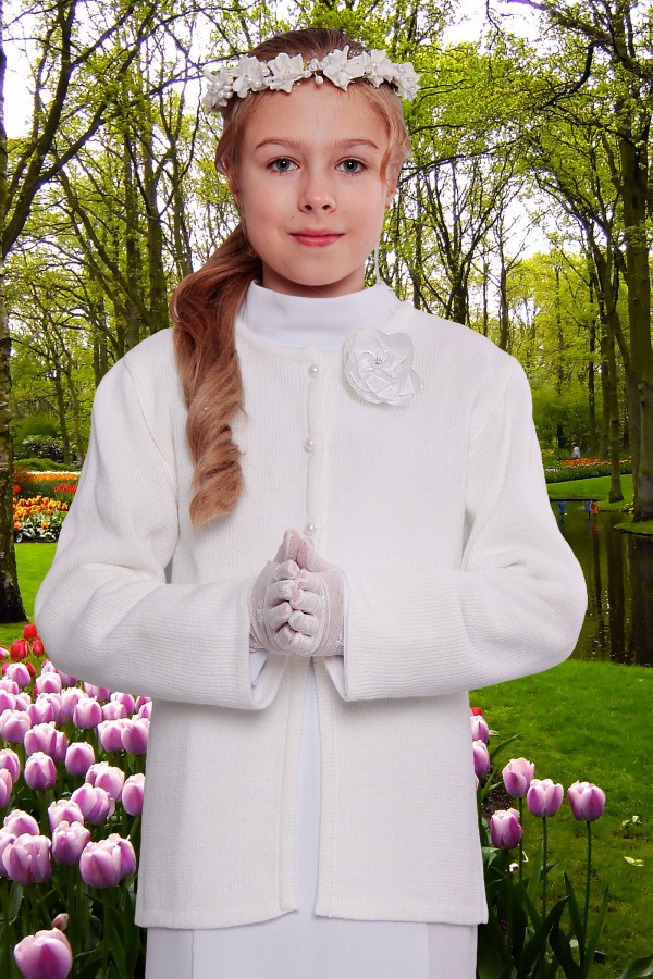 W naszej ofercie znajdą Państwo efektowne dopełnienie stylizacji, jakimi są sweterki komunijne. Ta propozycja okrycia wierzchniego pełni nie tylko funkcję ochrony przed zmienną temperaturą i zimnem w kościele podczas Pierwszej Komunii Świętej, ale także pięknie i elegancko się prezentuje. Doskonałej jakości sweterki dostępne w naszej ofercie zaprojektowane są specjalnie do założenia na albę, sukienkę komunijną czy komżę. Dzięki różnorodności naszego asortymentu, oprócz rozmiaru, mogą Państwo dobrać z powodzeniem sweterek komunijny do upodobań oraz stylizacji, która będzie użyta podczas Pierwszej Komunii Świętej.