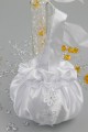 Dodatki komunijne dla dziewczynki to również torebki. Produkt z naszej oferty należy do kategorii: Akcesoria przeznaczone na pierwszą komunię dla dziewczynek. Zdjęcie prezentuje torebkę należącą do serii: Torebki komunijne mieszki.