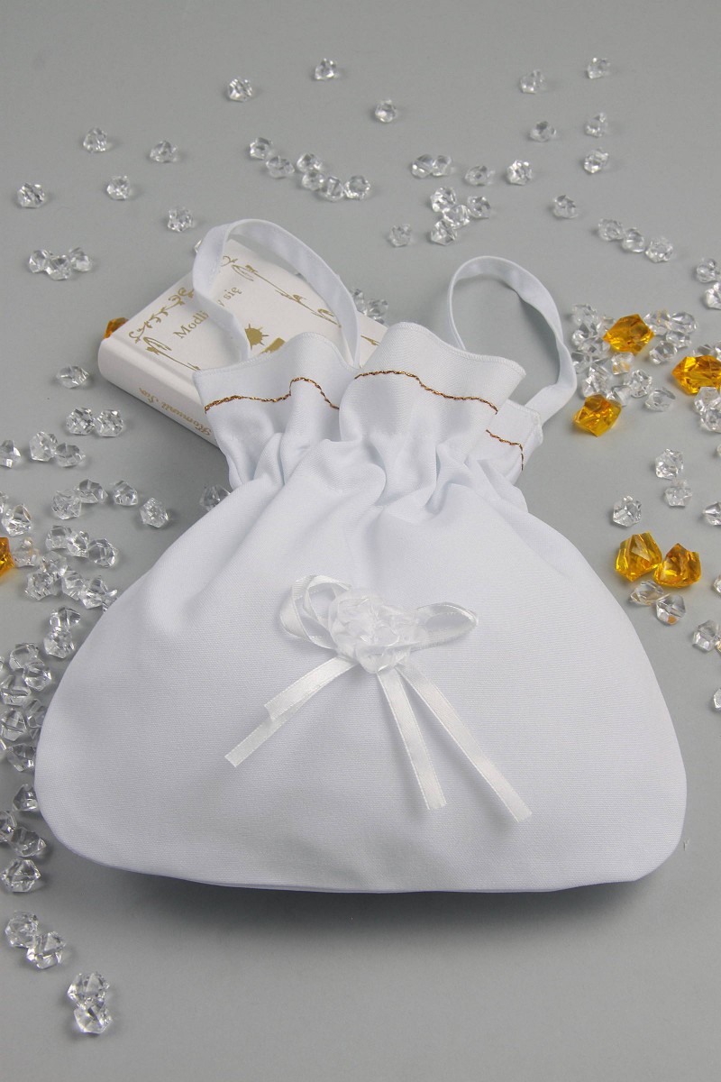Dodatki komunijne dla dziewczynki to również torebki. Produkt z naszej oferty należy do kategorii: Akcesoria przeznaczone na pierwszą komunię dla dziewczynek. Zdjęcie prezentuje torebkę należącą do serii: Torebki komunijne sakiewki.