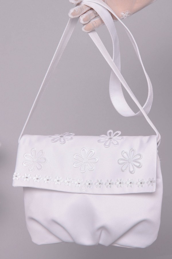 W dniu Pierwszej Komunii Świętej, rodzice dokładają wszelkich starań, aby ich pociechy czuły się wyjątkowo i wyglądały doskonale. Dbamy o to, żeby każda stylizacja była idealnie dopasowana do każdej dziewczynki, a przy tym zapewniała jej komfort użytkowania. Ważnym elementem garderoby komunijnej są dodatki, takie jak torebka. Oprócz pięknego i subtelnego wyglądu, torebki mieszczą wszystkie potrzebne przedmioty podczas uroczystości — takie jak różaniec czy modlitewnik. W naszej ofercie posiadamy popularne torebki satynowe na pasek wysokiej jakości, które w zestawieniu z białą albą lub sukienką, prezentują się elegancko i schludnie. Nasze torebki posiadają szeroki wybór zdobień, które zachwycą rodziców oraz wszystkich gości podczas uroczystości.