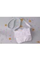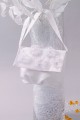 Dodatki komunijne dla dziewczynki to również torebki. Produkt z naszej oferty należy do kategorii: Akcesoria przeznaczone na pierwszą komunię dla dziewczynek. Zdjęcie prezentuje torebkę należącą do serii: Torebki komunijne satynowe na pasek.