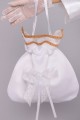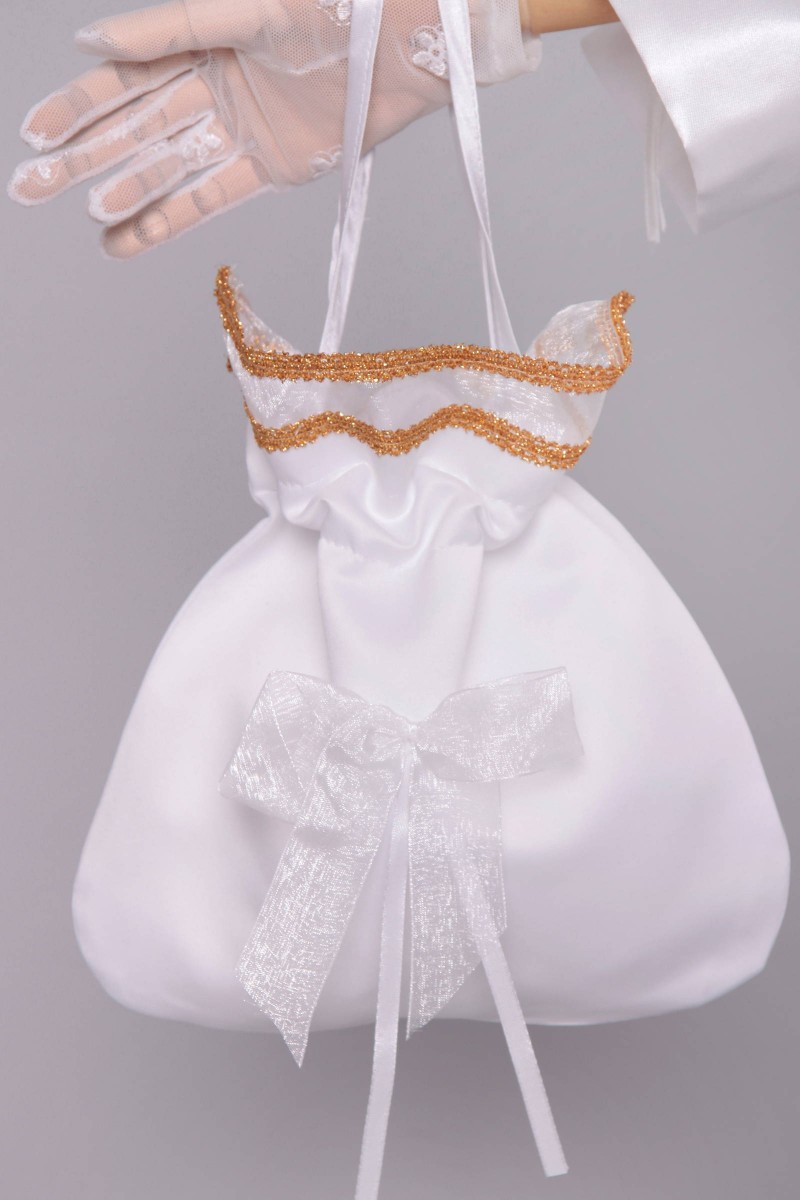 Dodatki komunijne dla dziewczynki to również torebki. Produkt z naszej oferty należy do kategorii: Akcesoria przeznaczone na pierwszą komunię dla dziewczynek. Zdjęcie prezentuje torebkę należącą do serii: Torebki satynowe sakiewki.