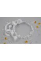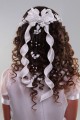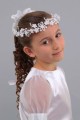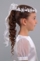 Wzór na fotografii należy do kategorii: Dodatki komunijne dla dziewczynek. Modelka prezentuje wianek komunijny należący do serii: Wianki komunijne klasyczne.