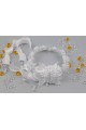 Wzór na fotografii należy do kategorii: Dodatki komunijne dla dziewczynek. Modelka prezentuje wianek komunijny należący do serii: Wianki komunijne klasyczne.