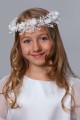 Wzór na fotografii należy do kategorii: Dodatki komunijne dla dziewczynek. Modelka prezentuje wianek komunijny należący do serii: Wianki komunijne klasyczne.