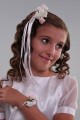 Wzór na fotografii należy do kategorii: Dodatki komunijne dla dziewczynek. Modelka prezentuje grzebyk komunijny z bransoletką "Jak żywy" należący do serii: Grzebyki komunijne z bransoletką "Jak żywe".